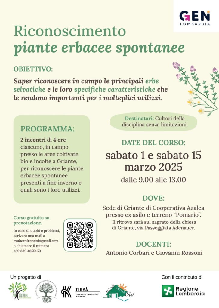 Sabato 1 marzo e sabato 15 marzo vi invitiamo al corso gratuito: RICONOSCERE PIANTE ERBACEE SPONTANEE, con i docenti Antonio Corbari e Giovanni Rossoni.