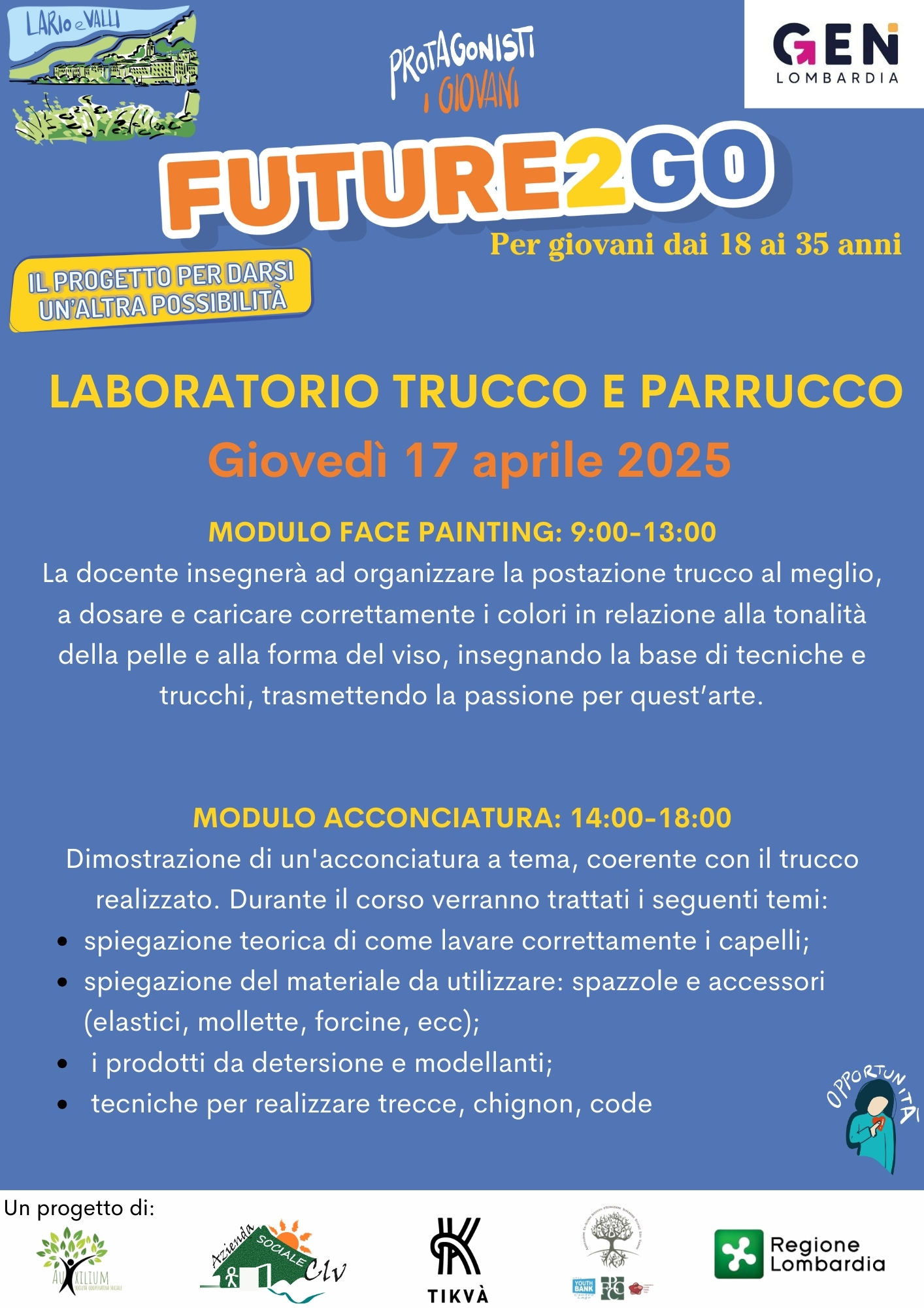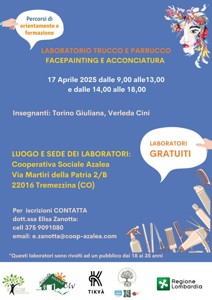 Se avete tra i 18 e 25 anni e siete in cerca di una nuova aspirazione, vi invitiamo a partecipare giovedì 17 aprile presso la nostra sede in Via Martiri della Patria 2/B, per un corso di formazione di trucco e parrucco tenuto dagli insegnati: Torino Giuliana e Verlana Cini.